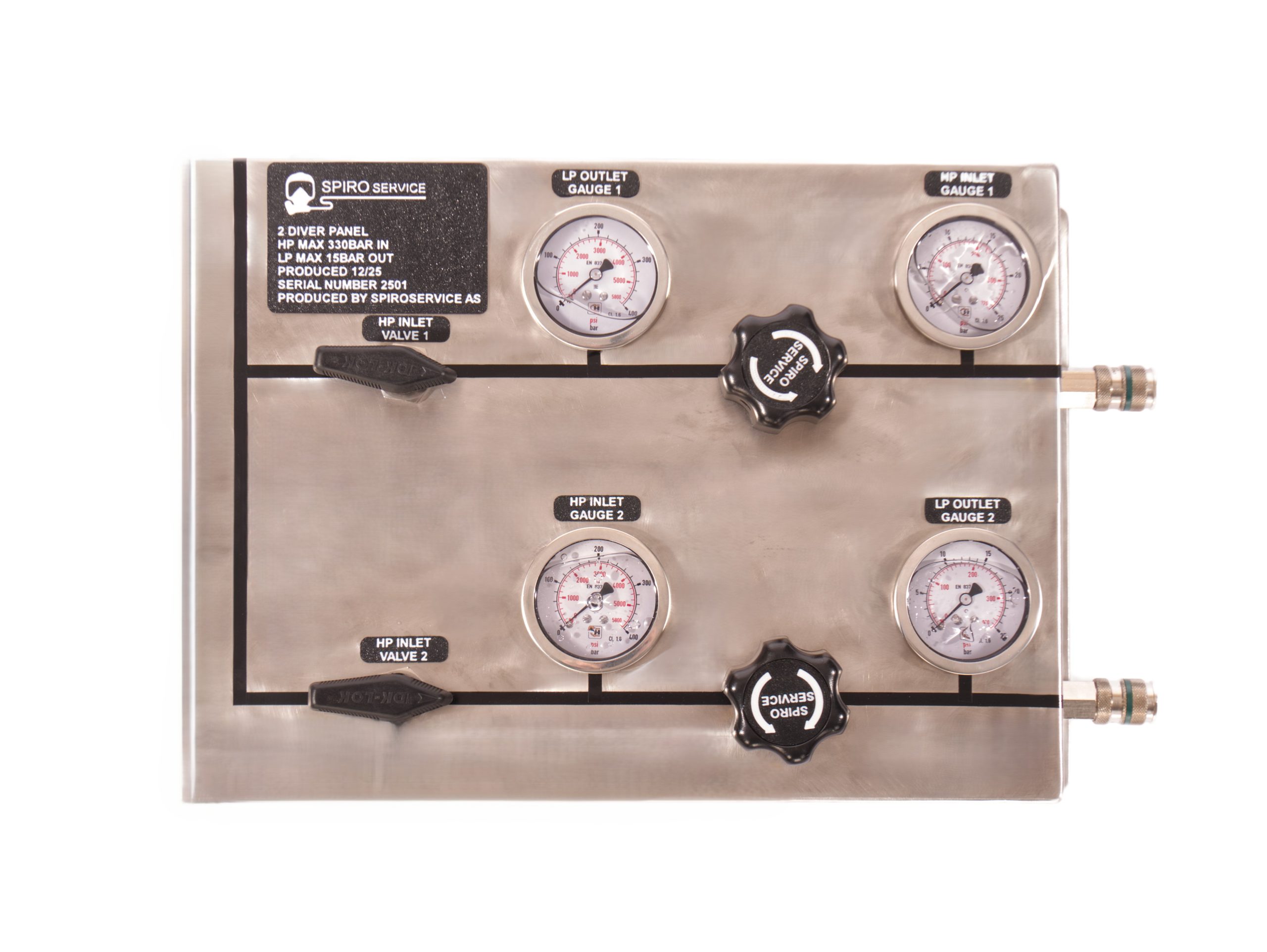 Panel, Spiro Service, Regulatorpanel 300 bar til max 15bar – 2 luft linjer