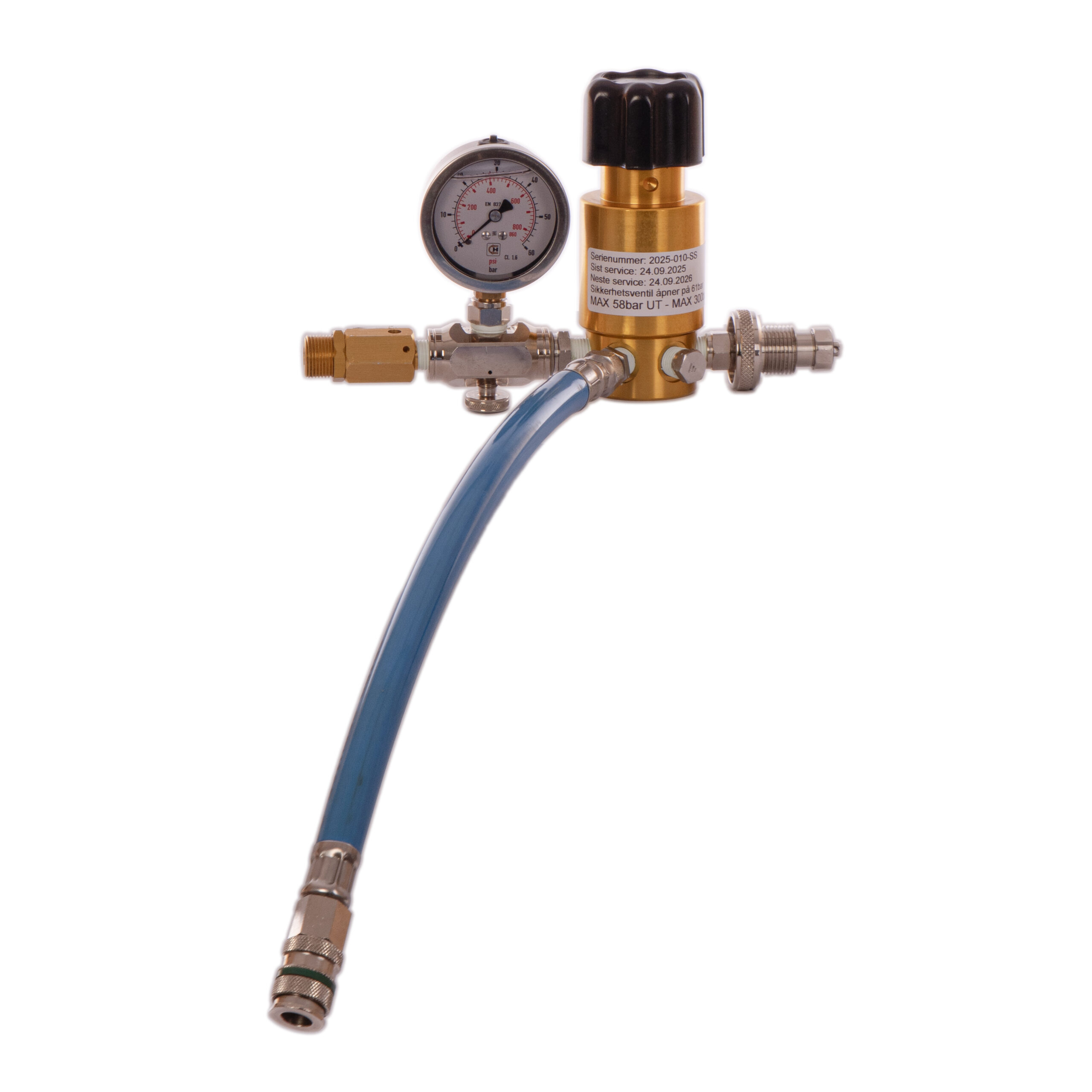 Trykkregulator for Umbilical/pusteslange-testing Denne trykkregulatoren er utviklet for profesjonell bruk ved trykktesting av Umbilical/pusteslanger til dykkere.